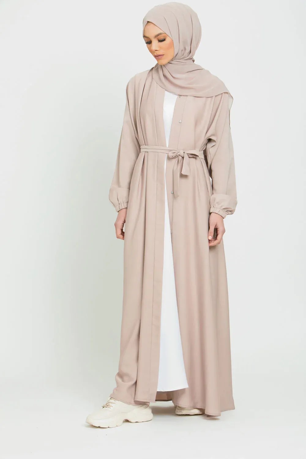 33 reviews for OPEN ABAYA WITH ELASTICATED CUFFS – NATURAL