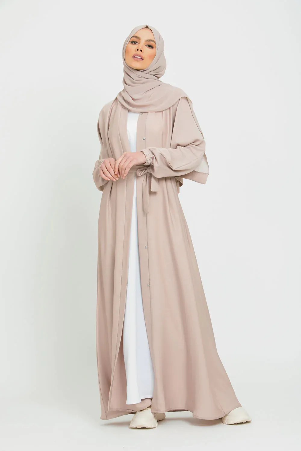 OPEN ABAYA WITH ELASTICATED CUFFS – NATURAL